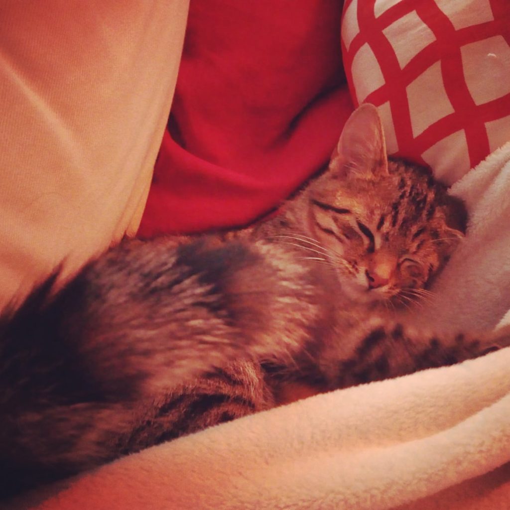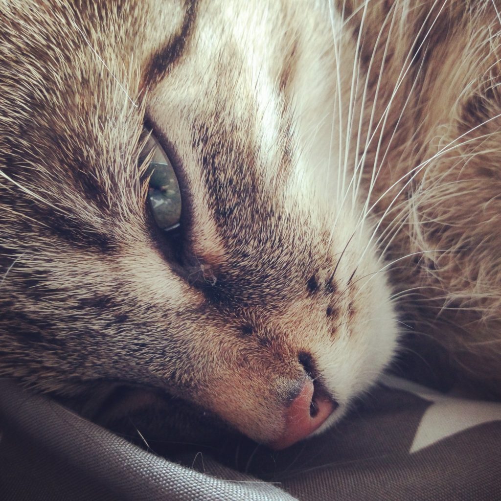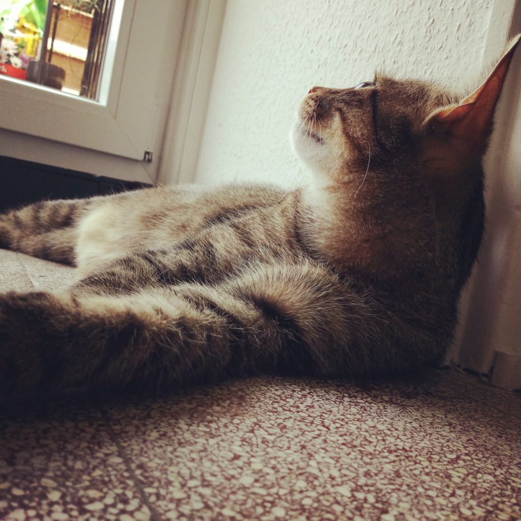 Er kam mit nicht ganz vier Monaten zu uns, recht spontan, weil alles etwas drunter und drüber ging – wie eigentlich immer mit diesem Kater. Wir möchten nicht sagen, dass er aus schlechter Haltung kommt, denn das wäre übertrieben, aber gut war sie sicherlich nicht. Hier konnte er aufblühen, endlich richtig spielen und toben, seine Krallen wetzen. Innerhalb von 24 Stunden stellte sich heraus, dass er ein anhängliches Käterchen ist, das viel Beschäftigung haben will. Er ist ein echter Beschützer, muss immer wissen, was im Hausflur passiert, und kommt augenblicklich angesprintet, wenn man ihn wegen einer Spinne ruft. Selbst halb in Narkose muss er aufpassen und hinterherlaufen.