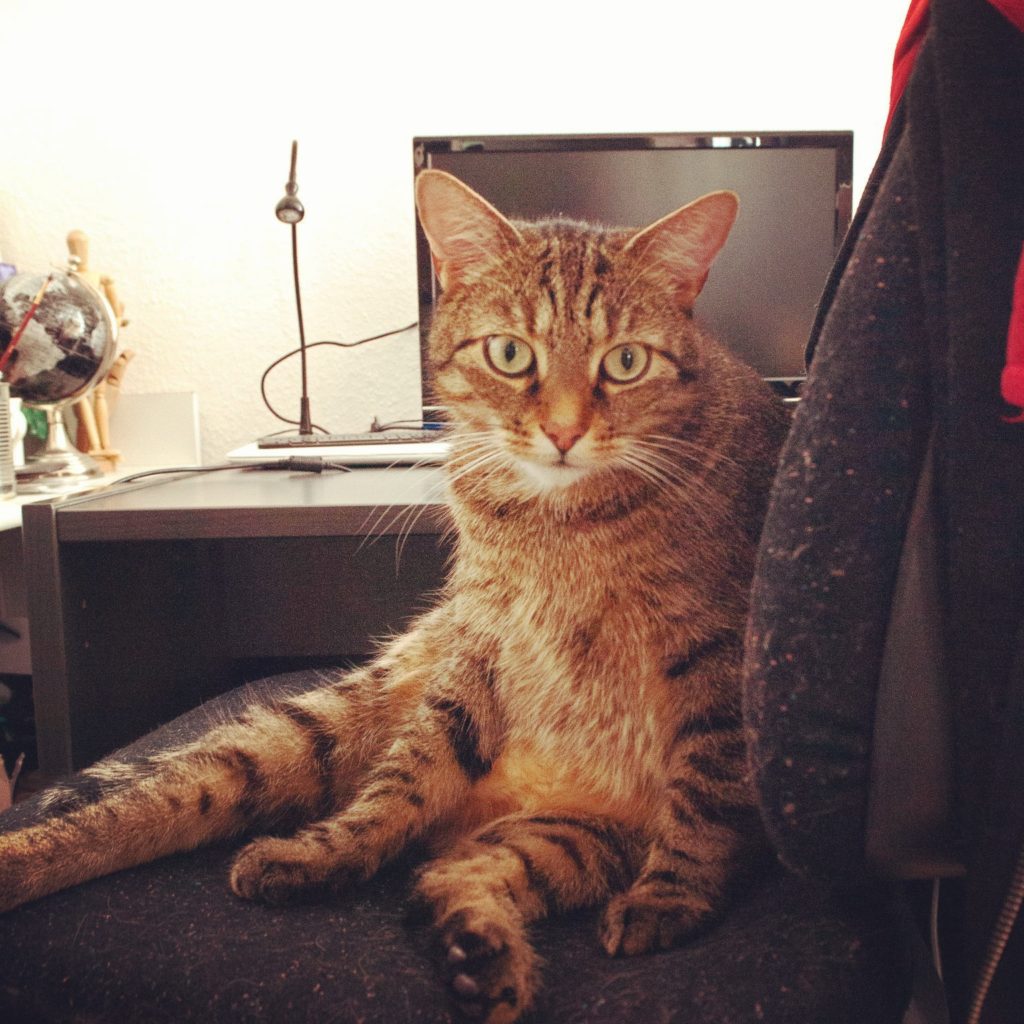 Sir Arthur Arthur Puss. Er ist unser Ältester und nach King Arthur benannt und daher auch der König von allem – zumindest glaubt er das und es ist egal, wie oft man ihm sagt, dass er nur Herrscher dieser Wohnung sei (und seine Mütter immer noch das Sagen haben), er hält eisern daran fest. Kein Wunder, wenn alle Gäste ihn auch als solchen ansprechen.